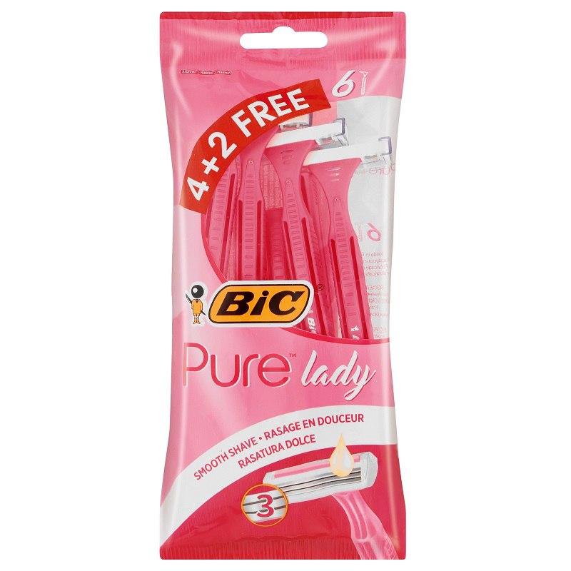 BIC PURE 3 LADY RASOIRS 4 PLUS 2 FREE POUCH